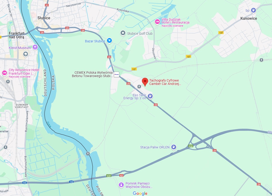 Zjedź z autostrady A2 na zjeździe 29 w kierunku Słubic.